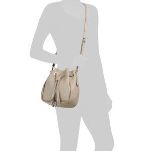 CHEVAL Taupe Made In Italy Leather Tassel Strings Bucket Hobo