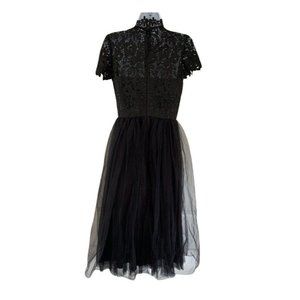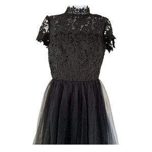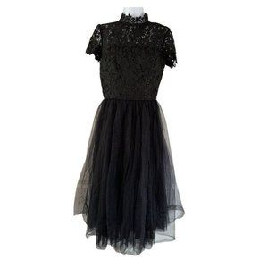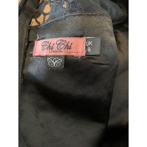 CHI CHI LONDON Black Lace Floral Tulle Netted MIDI Cocktail Formal Dress Gown 8