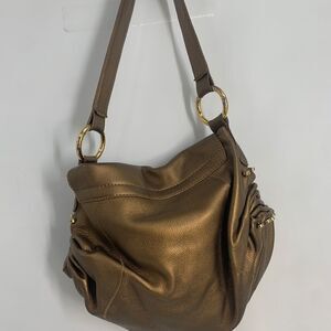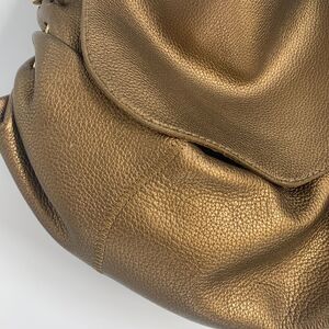 CHI Large Gold Leather Slouchy Shoulder Bag w Gold Hardware and matching Pouch