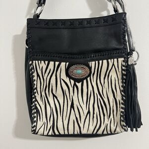 CHI by Falchi Purse Shoulder Bag Black Zebra Animal Print Leather Designer