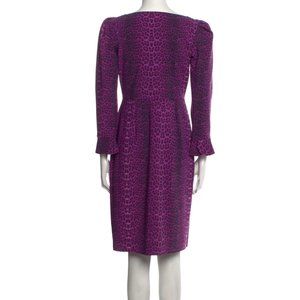 CHIARA BONI Animal Print Purple Puff Sleeve Knee-Length Dress Large Sz 48