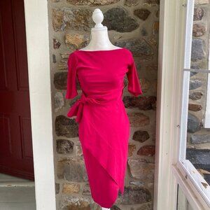 CHIARA BONI LA PETITE ROBE Mimmaly Side-Knot Sheath Faux Wrap Dress FUSCHIA $695