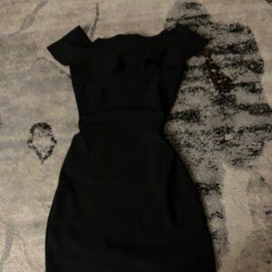 Sexy LBD featuring off-the-shoulder styling encircled by a ruffle detail; Curve-hugging style that will enhance the form.