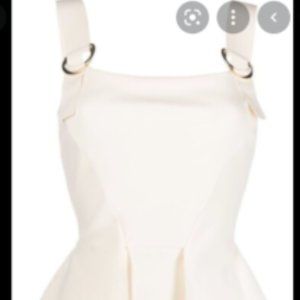 CHIARA BONI LA PETITE ROBE TORQUATA PEPLUM D-RING CREAM SHEATH DRESS 44 IT/ 8 US