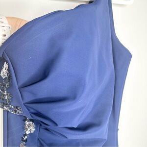 CHIARA BONI Size 12 Lianette RC One Shoulder Midi Cocktail Dress Navy