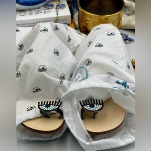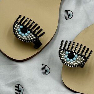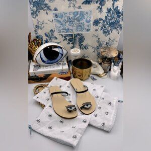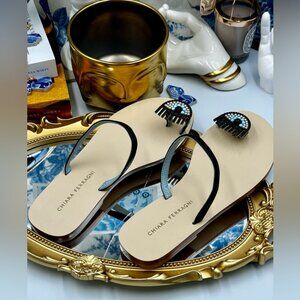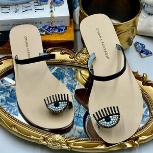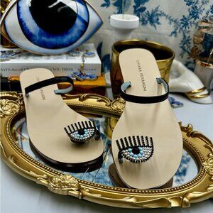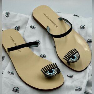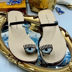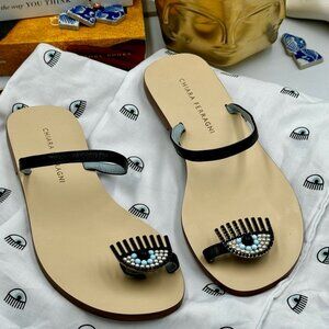 🆕 CHIARA FERRAGNI 🧿 NWOT Flirting Leather Toe Ring Sandal, Black - Sz 36