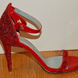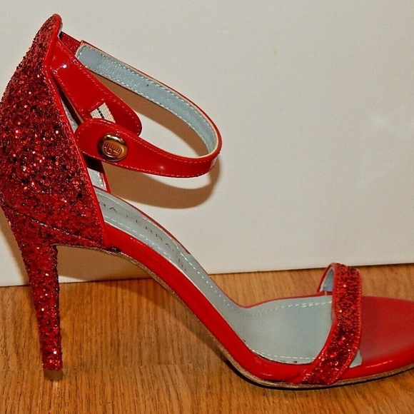 CHIARA FERRAGNI RED GLITTER SANDALS HEELS sz 39(8.5-9US) PRE-OWNED MADE IN ITALY