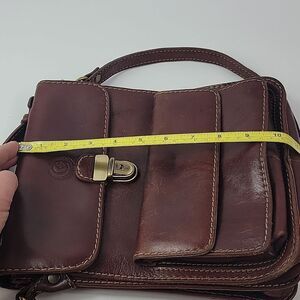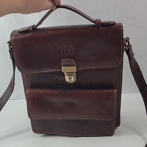 Full grain italian vegetable tanned cow leather crossbody bag. Chiarugi signature inner lining. Silver -tone metal hardware. Made in Italy.