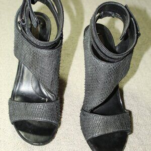 CHIC! BCBGMaxaria Wm Sz 10B Black Edgy Scale Pattern Ankle Strap 5" High Heels