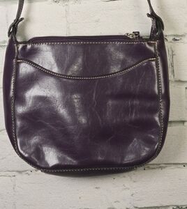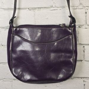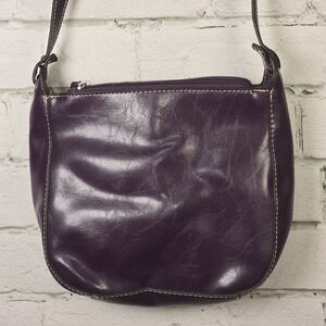 CHIC CROSSBODY LEATHER PURSE GLOSSY FINISH EGGPLANT COLORED LEATHER EUC