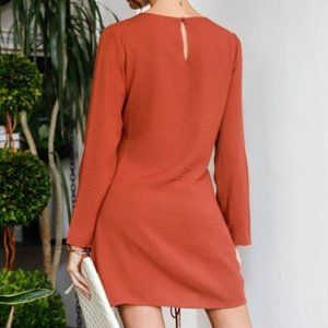 Terracotta Textured Asymmetric Front Lace Tie Drap Mini Dress