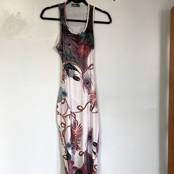How simply adorable is this dress!! Cut out back so adorably cute! Great for a night out or a night out at the beach this summer. Colors are soooo pretty! Size small this is a long dress. Approx length from shoulder seam to bottom is 42in. From neckline down it’s approx 36 in. From arm pit to arm pit approx 14in has some stretch to it.
