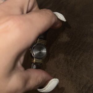 Gentle use, May need battery.Elegant watch with a gold Tone case and cream strap. Perfect for any occasion.