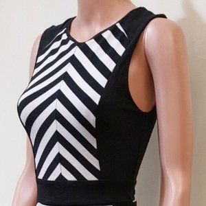 An absolutely beautiful statement cocktail dress from Bebe. A timeless hot piece that combines the classy with edgy chic. Punctuated with black and white color block panels. Designed with an ultra-sleek bodycon silhouette that molds your body into an hourglass shape, crew neckline, sleeveless construction, sexy mini length, and zipper closure on the back for easy in and out. It will look fabulous with statement earrings, strappy heels, and a mini clutch. Made from stretchy, sturdy yet soft rayon/ polyester/ spandex blend. Fully lined. Approx measurements unstretched: Pit to pit flat 14", Waist 11.5", " Length 30". Coming from a clean, smoke-free home.