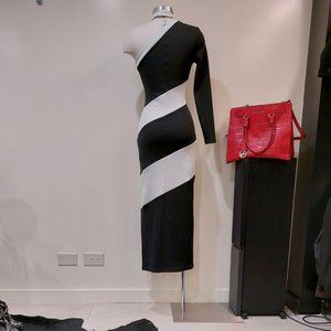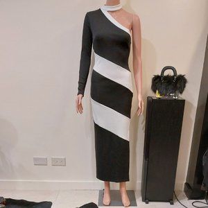 RARE! Absolutely stunning, a true showstopper dress from Asos! It's one of those timeless hot pieces that combine elegance and edge. Comes in a color block black and white stripe pattern. Designed with a sexy one-shoulder neckline that continues to a single long sleeve, stylish choker detail, a flattering bodycon silhouette that molds your body into an hourglass shape, calf length, and a chic side slit. It will look amazing styled with barely-there heels and a mini clutch. Made from high-quality comfy and stretchy material (96% Polyester, 4% Elastane). Size US 4 that fits XS/S. Approx measurements unstretched flat: Waist 12.5" flat, Pit to pit 15", Sleeve 23", Length 52". NWOT from a clean, smoke-free home.