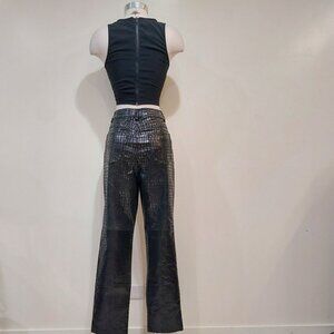 ๐CHIC & SEXY๐VTG Genuine Leather Croc Embossed Straight-Cut Pants