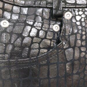 RARE FIND! An absolutely beautiful luxurious statement pants from Newport News Jeanology Collection! it's one of those timeless hot pieces that will elevate any outfit and will take it to the next level. I snatched those beauties from a Millwokie Vintage Boutique. It comes in go-with-everything sleek Black color with glossy finish.Crafted from 100% genuine leather with chic croc-embossed texture. Featuring flattering high waisted sihluette, modern straight fit, a classic five-pocket design, belt loops, button and rivets with Jeanology logo, zip fly closure, silver hardware, straight-leg cut, and full smooth satin lining in matching color. Surprisingly versatile, they are perfect for both casual and evening occasions, and will look equally stunning with a sexy crop top and leather jacket as it is with a blouse or blazer and killer heels. Size 10, in my opinion fits like M. Approx measurements flat: waist 15", rise 11.25", inseam 31", Length 42.25". NWOT from a clean, smoke-free home.