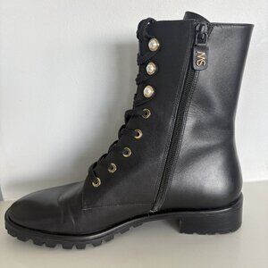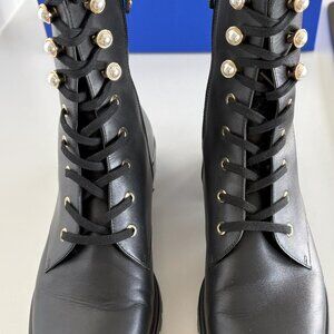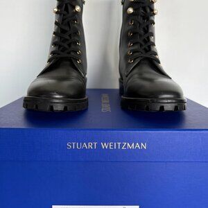 CHIC Stuart Weitzman Laine Pearl & Gold- Leather Combat Boots with Box US 8.5