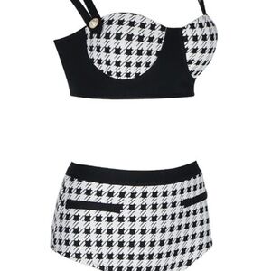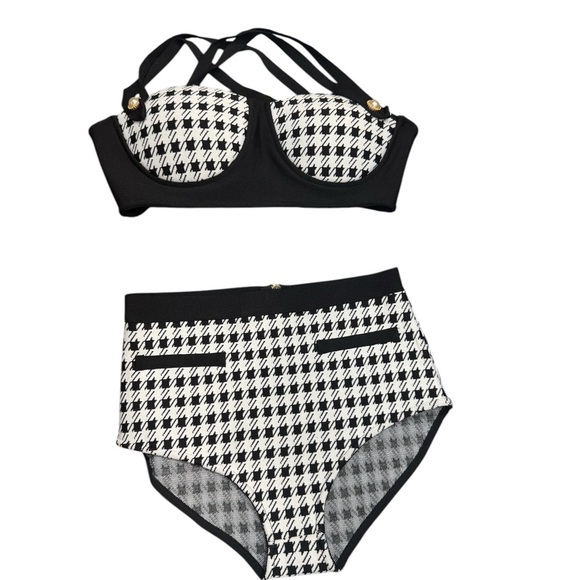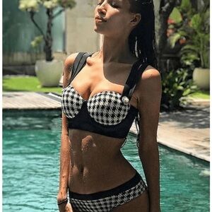 CHIC THE BRAND.Black and White Gingham Bikini with High-Waisted Bottoms