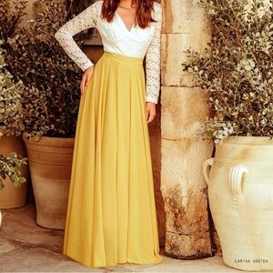 CHIC WISH TIMELESS CHIFFON PROM MAXI SKIRT, MUSTARD YELLOW SIZE XS