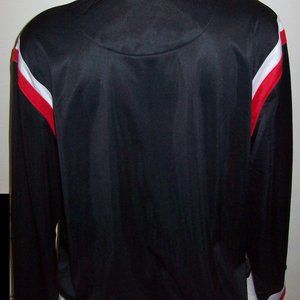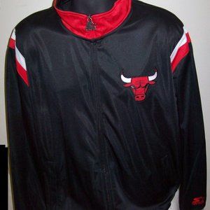 Size MEDIUM, XL, 2X New: CHICAGO BULLS Full Zip Thick TRACK JACKET. Thick polyester jacket has ribbed cuffs and waistline. Sewn on BULLS Logo and Sewn Starter on the cuff of the sleeve. 100% Polyester. Thick and Comfortable flows with body. Measurements: Side to side Across chest armpit to armpit MEDIUM: 23" LARGE: 24, XL: 25.5, 2X: 27" Top of Collar to Botton: 32 1stflrk