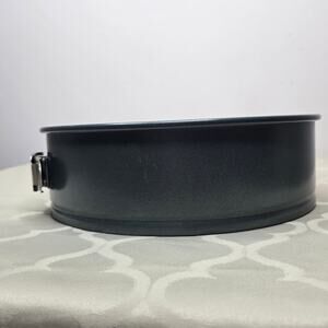 Round non-stick springform cake pan. Ideal for baking cheesecakes and other desserts. Easy release with latch closure. 9" Diameter and 2.75" high.