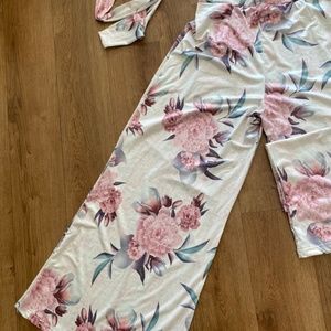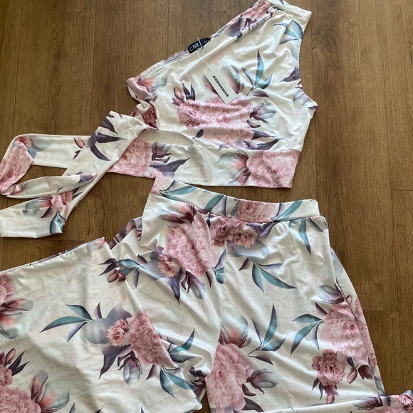 Soft material -wide leg pants - cropped one shoulder top