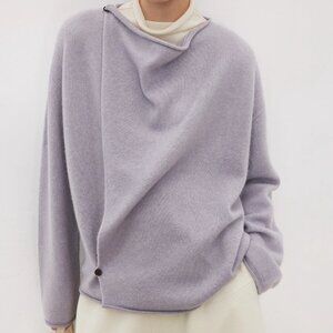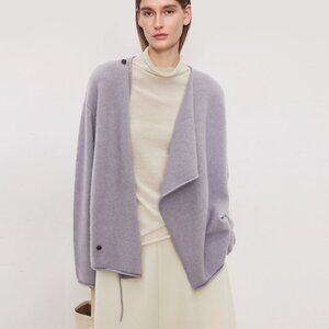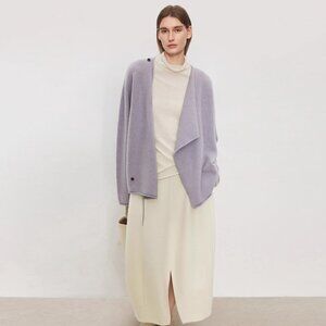 CHICJOC Asymmetric Draped Neck Wool–Cashmere Cardigan Soft Mist Purple size 36
