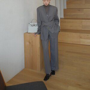CHICJOC Classic Timeless Elephant Gray Wool Blazer Size 38
