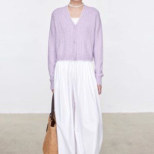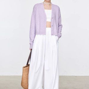 Harmonious Texture: The unique blend of Viscose cooling fancy knot yarn and long-staple cotton creates a harmonious texture, setting this cardigan apart with its elegant appeal.
