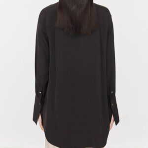 CHICJOC Luxury 100% Silk High-Density Glossy Blouse – Black – Size 36