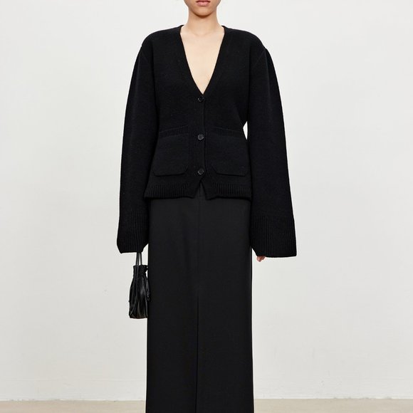 CHICJOC Scarlet Style Cashmere Cardigan Deep V-neck black size 38