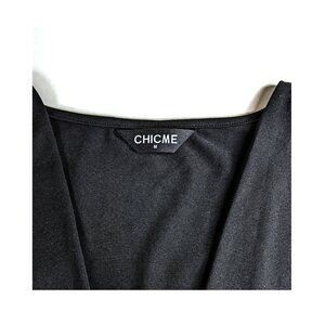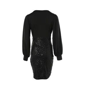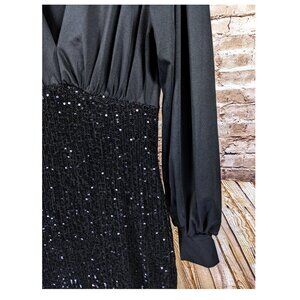 CHICME Black Sequin Ruched Bust Dress, Shirred Waist Long Sleeve Sz MedNew