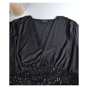 Gorgeous and Classic Black Sequin Ruched Bust Dress by CHICME, Shirred Waist with Long Balloon Sleeves. Nice quality fabric and hangs beautifully. Fabric has stretch. Women's size Medium and will fit size 4-6 well. New unworn condition and without defects.