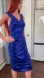 CHICME Metallic Royal Blue Stretchy Bodycon Midi Ruched Dress Size XL