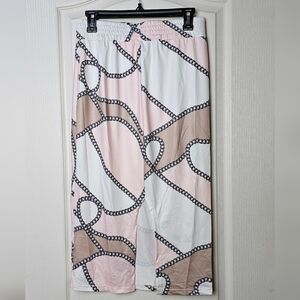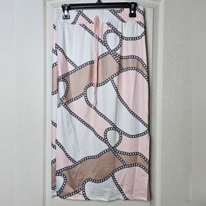 CHICME Women's 2pc Long Sleeve Top, Chain Print Color Block Skirt, Pink & White