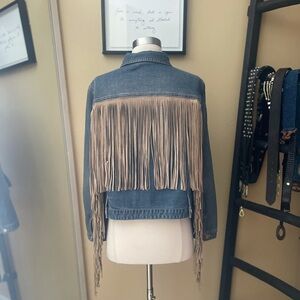 It's the jacket you dreamed of wearing to Woodstock, only so much better. Supple jean jacket with a vintage wash, a hint of stretch and the softest faux-suede fringe on the back and sleeves for a memorable exit.