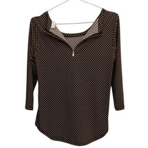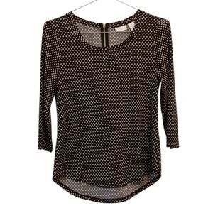 CHICO'S 0 Slinky Top Blouse S/4 Zip Back Polka Dots Office Career Travel Work