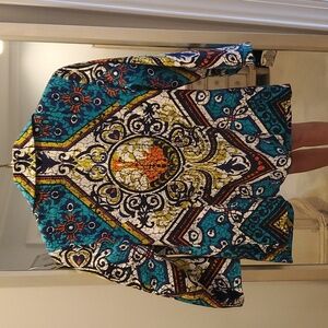 CHICO’S 0 blue orange lime white open front abstract jacket EUC
