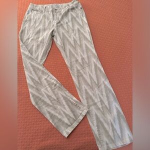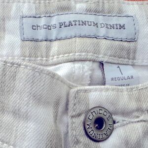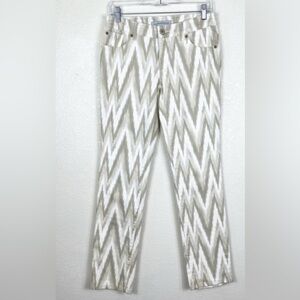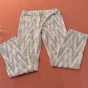 CHICOS 1 (8-10) Platinum denim Gray & White zigzag design Straight leg jeans.