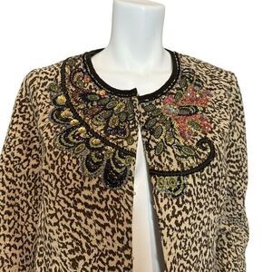 CHICOS 1 US M Leopard Print Micro Suede Embroidered Jacket Sequin Embellished