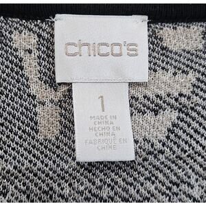 CHICO'S 1 Women 8 10 Cardigan Sweater Duster Open Black Beige Gold Cotton Blend