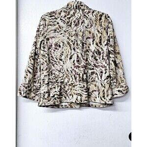 CHICO'S 100% Cotton Earth Tone Wooden Button-Up Women Jacket (1)