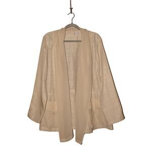 CHICO'S $129 Linen Silk Open Jacket w/ Silk Chiffon Trim Beige Chico's 3 / US XL
