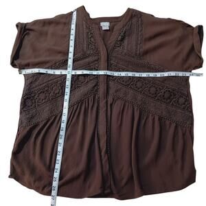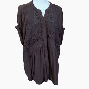CHICO'S 2 Boho Artsy Crochet Blouse Top L Short Sleeves Flowy Career Vacation