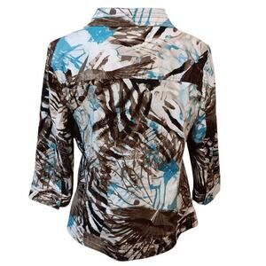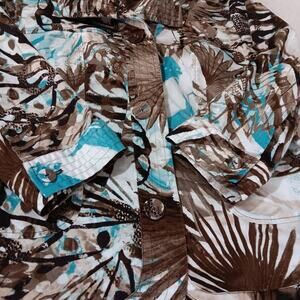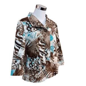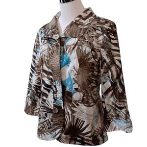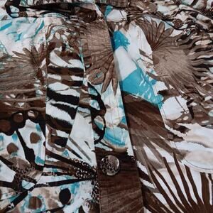 CHICO'S 2 Light Jacket Cute Buttons 12 LG Office Travel Leaves Animal Turquoise
