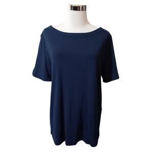 CHICO'S 2 Lot of 2 Soft Knit Tops Large Pullover Comfort Black Blue Casual Basic
