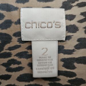 CHICO'S 2 Women 12 14 Shirt Button Up Cheetah Animal Print Long Sleeve Bust 44"