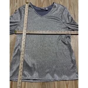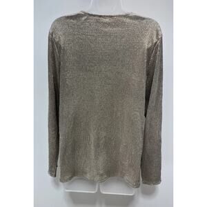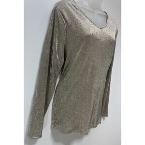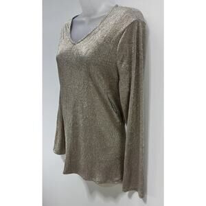 CHICO'S 2 Women's Long Sleeve V-Neck Gold Top Polyester Large