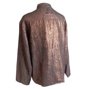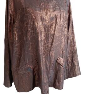CHICO'S 3 Dressy Silk Linen Evening Jacket Blazer XL Metallic Event Brown Bronze